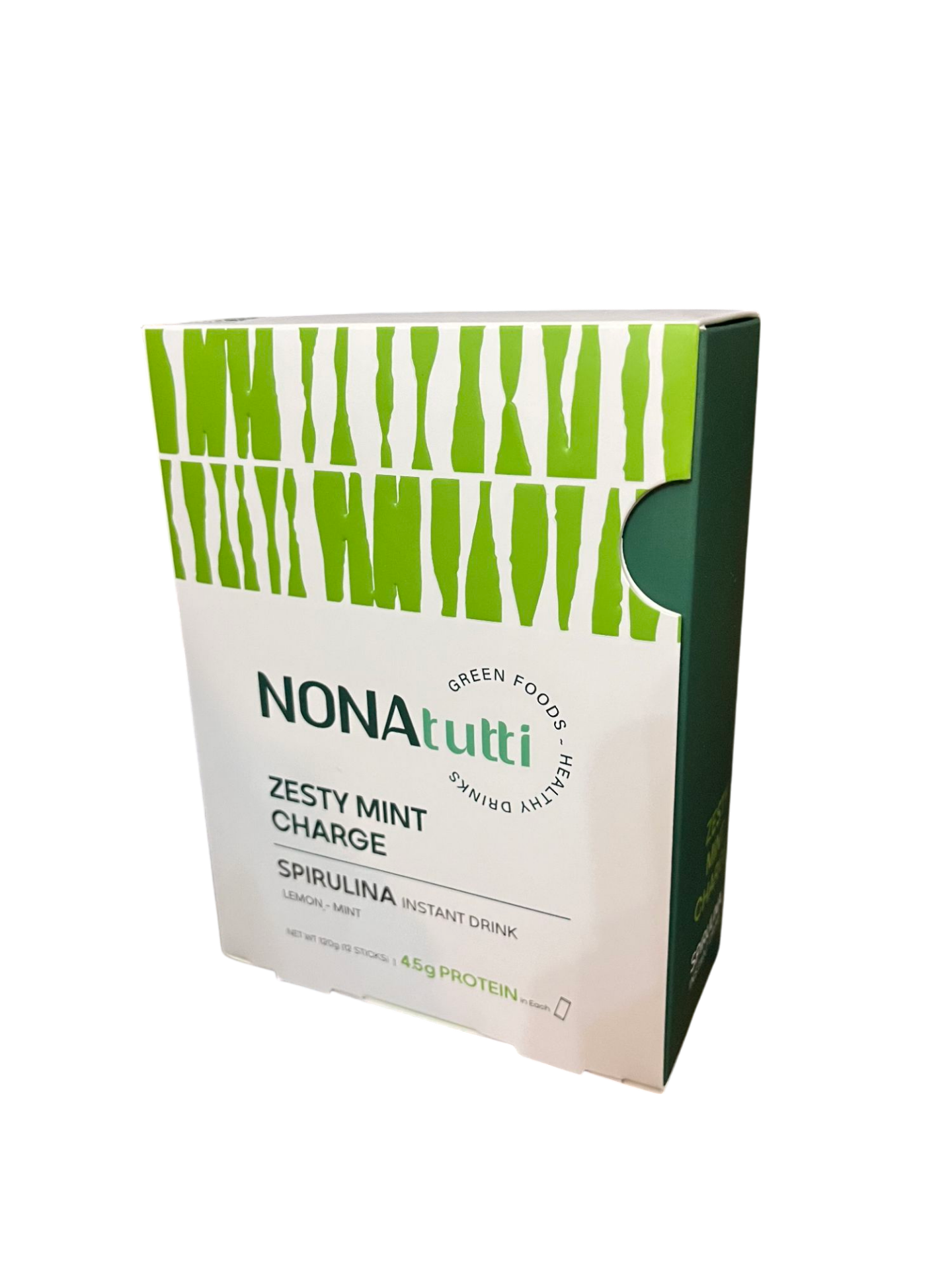 نوناتوتی با مجموعه جذاب پودرهای نوشیدنی اسپیرولینا برای یک سبک جدید زندگی از راه رسیده ! این طعمهای خوشمزه کمک می کنه شما بیشتر بتونید از مواد مغذی اسپیرولینا بهره ببرید. هر ساشه محتوی ترکیب خارق العاده ای از اسپیرولینا و مواد طبیعی دیگه ست که تجربه لذتبخش و سالمی رو به شما هدیه میکنه. با نوشیدنی Zesty Mint Charge هم از حس تازگی و پرانرژی نعناع و لیمو لذت ببرید و هم تمام مواد مغذی اسپیرولینا رو به بدنتون بررسونید. شما می تونید با روش های زیر این نوشیدنی رو میل کنید: 1- شات استارتر – یه روز خوب رو به سلامتی خودت با یه شات شروع کن نصف محتویات ساشه رو در یه لیوان شات با 35 میلی لیتر آب مخلوط و نوش جان کن ( شکل : شات 35 ml و ساشه ، شاید یه خورشید که نشوندهنده صبح هست) 2- ست بعد از تمرین ورزشی – بعد از ورزش به بازسازی و رشد عضلات بدنت کمک کن محتویات ساشه رو با 300 میلی لیتر آب در یک لیوان یا قمقمه ورزشی مخلوط و نوش جان کن. اگه دوست داشتی پودر الکترولیت هم اضافه کن (شکل قمقمه ورزشی 300 ml و آیکون های ورزشی ....) 3- اسموتی های جذاب – تا دلت می خواد با همین یک ساشه ، اسموتی ها و نوشیدنی های متنوع و مقوی درست کن محتویات ساشه رو به دلخواه با میوه ها ، آب میوه ها، انواع مغزها و آجیل ها و انواع سبزیجات مختلف ترکیب کن و طعم های جذاب و هیجانی جدید بساز. ( شکل میکسر اسموتی ساز با میوه ها و مغرها و سبزیجات و ..)